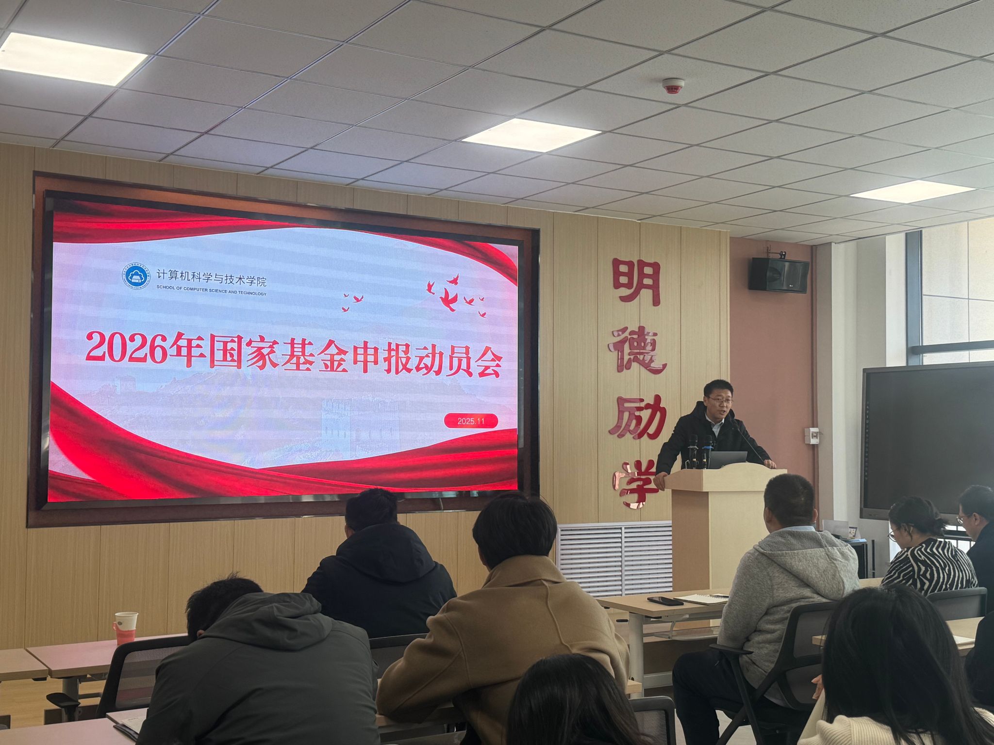 为积极部署2026年度国家自然科学基金项目的申报工作,营造浓厚的科研氛围,全面提升项目申报质量与立项率,学院于2025年11月25日上午在软件实验大楼召开2026年度国家基金项目申报动员大会。会议由秦品乐院长主持,并邀请科学技术研究院院长丑修建教授参加,学院全体中青年科研骨干教师参加了会议。