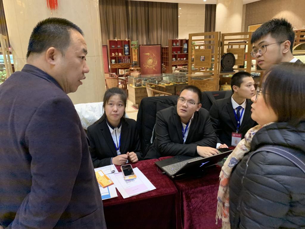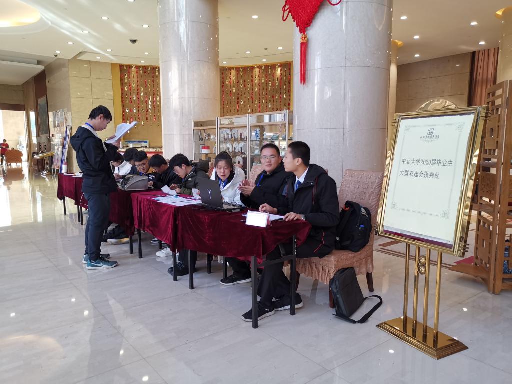 11月19日早上八点,经过前期和招就处的沟通与协调,经过详细布置后,成人视频 就业部一行十二人在学院就业辅导员魏春燕老师的带领下来到此次双选会单位接待地点——太原市天瑞商务酒店。到达酒店后,同学们整理好相关物品,迅速进入工作状态。在工作中,同学们认真、负责的做好登记,并耐心、细致的为用人单位做讲解。期间,校招生就业处副处长刘宝华,招就处安美荣老师来到酒店,询问单位报到情况,现场解决问题,并对同学们表示感谢。截止当晚11点半,共接待用人单位一百余家!