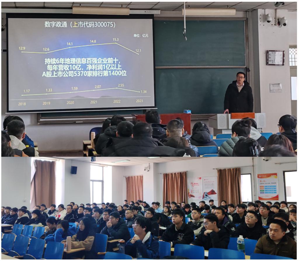 12月27日中午,学院召开北京数字政通科技股份有限公司专场招聘宣讲会,该公司为上市企业,市值100亿,连续6年地理信息行业百强企业前十,主要负责政务信息化软件开发和定制,数字政府网格化细分行业龙头,此次招聘宣讲共吸引了包括本学院在内全校共150余位毕业生参加。公司人事负责人胡威向同学们介绍了关于人才培养、实习就业等方面的院企合作情况,并就公司发展、平台建设、招聘岗位要求、收入待遇及工作地点安排向同学们做了讲解。在互动环节中,同学们就自己所关心的岗位选择、能力要求、工作地点以及公司发展平台机会等问题与公司方进行了交流。