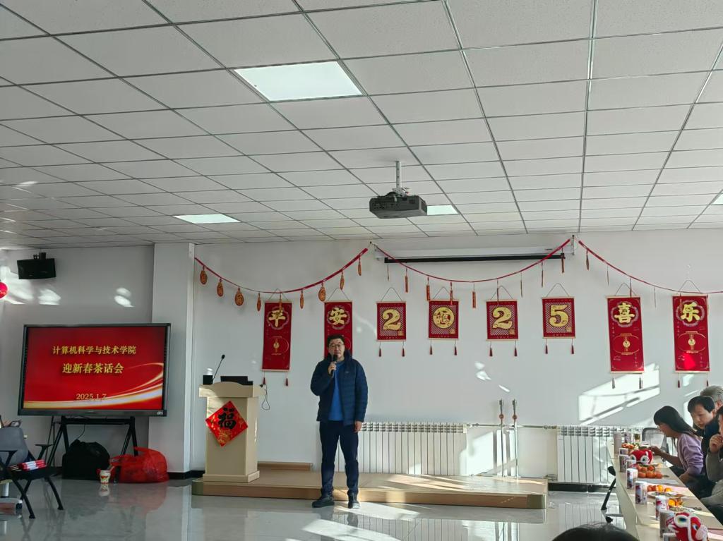 在软件大楼527举办了“智汇新春,码绘锦程”2025年迎新春教职工茶话会。茶话会邀请了校党委常委、副校长刘俊以及学院毕业的职能部门老师、学院全体教职工共80余人参加。