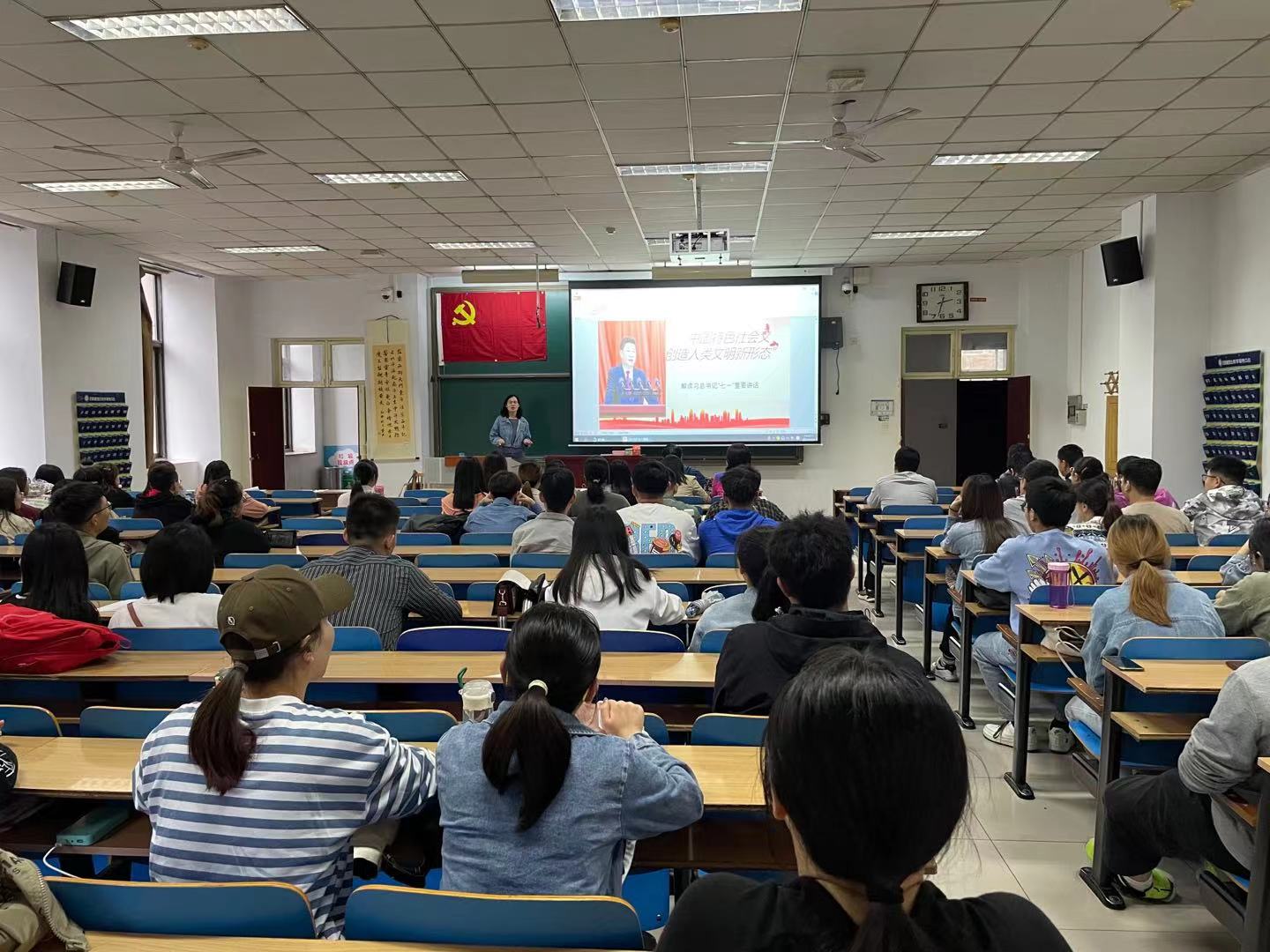 学习习近平总书记“七一”重要讲话精神宣讲会在11205H举行,大会邀请了马克思主义学院教师韩秀兰主讲,学院党委委员及师生党员参会,会议由院党委书记郭书杰主持。
