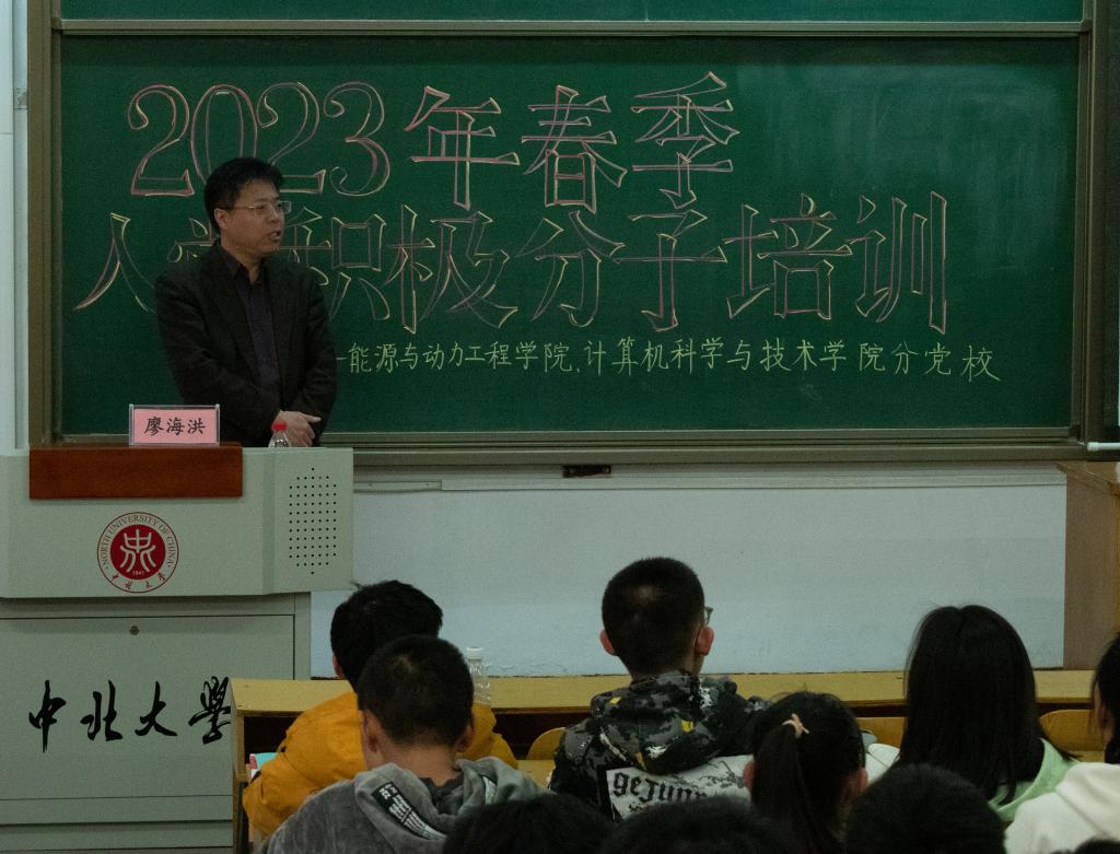 信息与通信工程学院党委书记曹凤才为学员们讲解《党的光辉历程》,带领学员们回顾建党的光辉历史,从江船上诞生到斗争中成长再到成为抗日先锋队最后解放全中国,生动诠释了“党为人民而生,因人民而兴”。