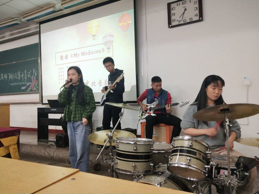 学生会主席刘川瑜学长热烈的致辞下,活动正式开始。本场活动不仅呈现一场精彩绝伦的辩论表演赛,在“是选择学姐还是学妹做女朋友”辩题下进行激烈的辩论外,更有“无人区玫瑰乐队”为我们带来了好听的歌曲,让在场的全体人员享受了一场视听盛宴。