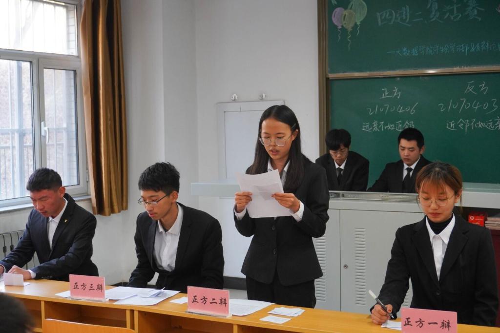 经过几轮激烈的论战,比赛终于结束。辩手们清晰的思路和巧妙的陈词给在场的观众和评委留下了深刻的印象,最后21070401和21070404在四进二的比赛中胜出,进入之后的比拼,21070405和21070402在复活赛中获胜成功复活。
