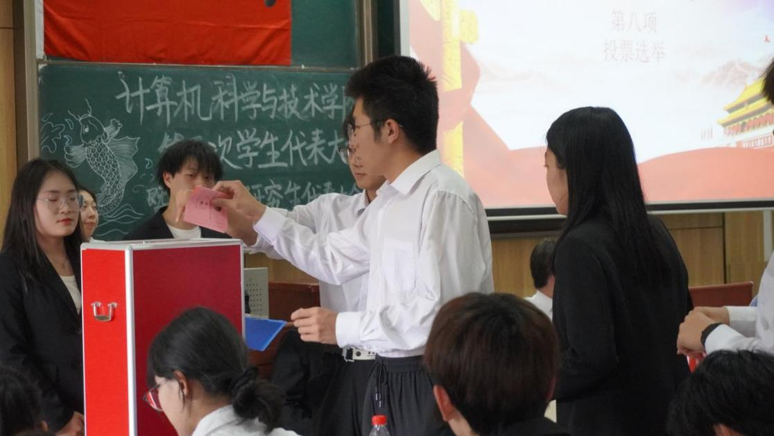 选举过程采用无记名投票方式,正式选举采取差额选举的办法。在监票人的全程监督下,代表们将自己的选举票投入集纳箱。等候计票期间由第四届学生会执行主席曲英杰同学作《成人视频