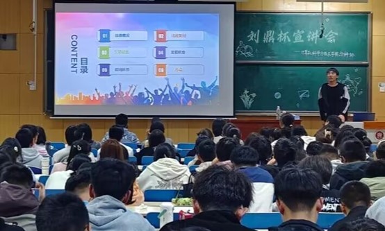 宣讲开始,冯天航同学向大家介绍了“刘鼎杯”的背景历史及重要性。作为一年一度的重要创新创业大赛,刘鼎杯为我校培育了大批优秀人才。通过参加刘鼎杯,同学们不仅能够为大学生涯增添乐趣,更能够培养自我创新创业能力,锻炼团队实践能力。