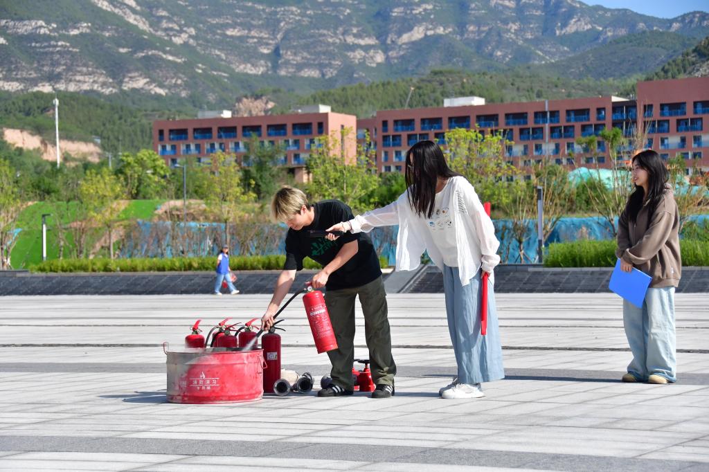 所有人员于东广场集合,在学生会生活部的组织下由于树江同学向同学们讲解了灭火器的使用方法并与其他成员带领学生模拟灭火体验,直观地了解到消防安全知识,提升了消防意识与技能。最后有序引导集合地点的学生安全撤离,并整理现场。